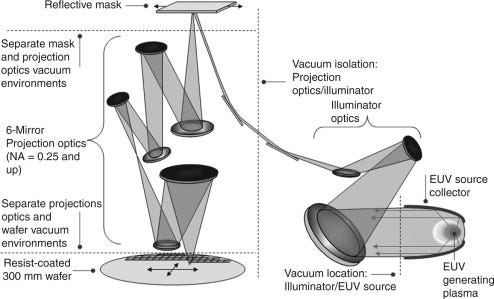 To generate EUV light, one cannot use a regular bulb. Reliably creating EUV light is an immense technical challenge, which has been in the works since at least 1984, but it wasn’t until multiple breakthroughs at AMSL (Netherlands) in 2018 that it became commercially viable, through their new EUV lithography systems. TSMC purchase EUV lithography machines from ASML for a staggering price of $150M per machine.