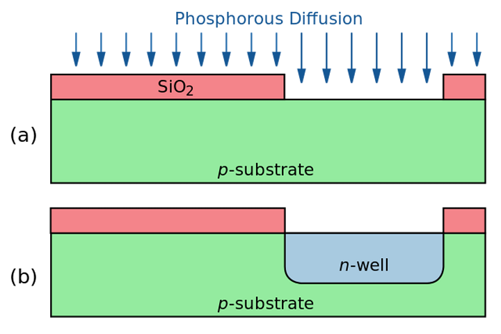 Finally, ion implamantation is a way to change the conductive properties of the wafer via the controlled addition of dopants. This is done by accelerating ions such as boron, phosphorus or asenic towards the wafer, which penetrate the surface.
